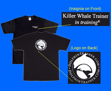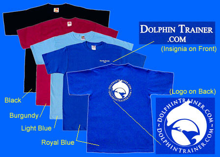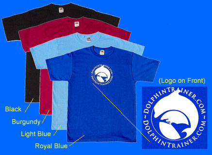 This very popular T-Shirt, features our own "DolphinTrainer.com" insignia on the FRONT