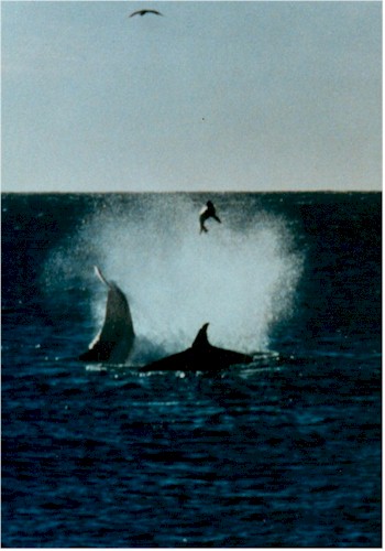 is a shot of a mother dolphin and her new born baby. Young calves stay very