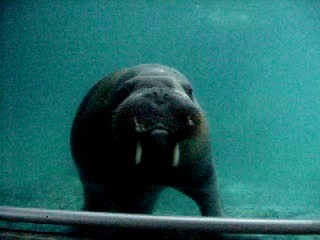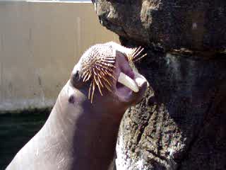 Video #2 - "See Food" A young male walrus enjoying some "see" food. This walrus really likes getting a reaction from the guests. One of his favorite methods is to hold food in his mouth and show it to the folks a few times before he eats it. This behavior is not trained but it is self reinforcing. He figured it out on his own and keeps doing it because he gets a positive response from the people watching him.
